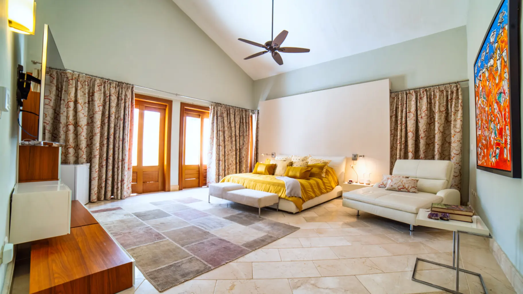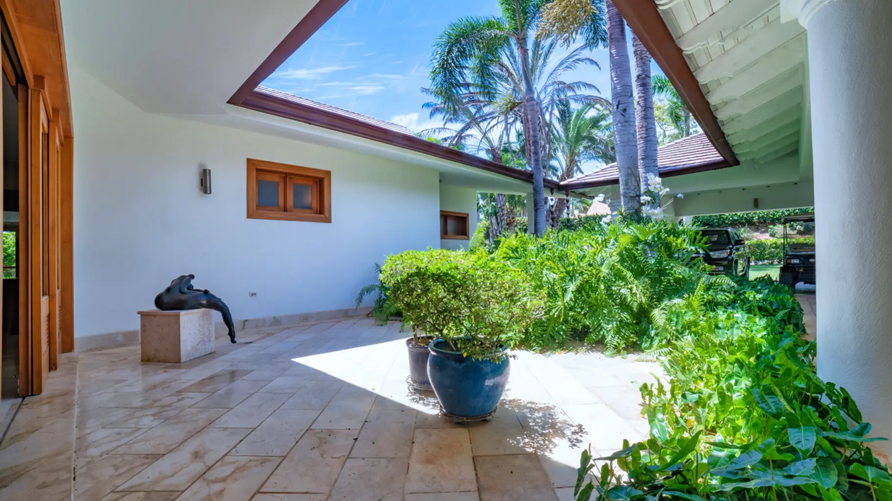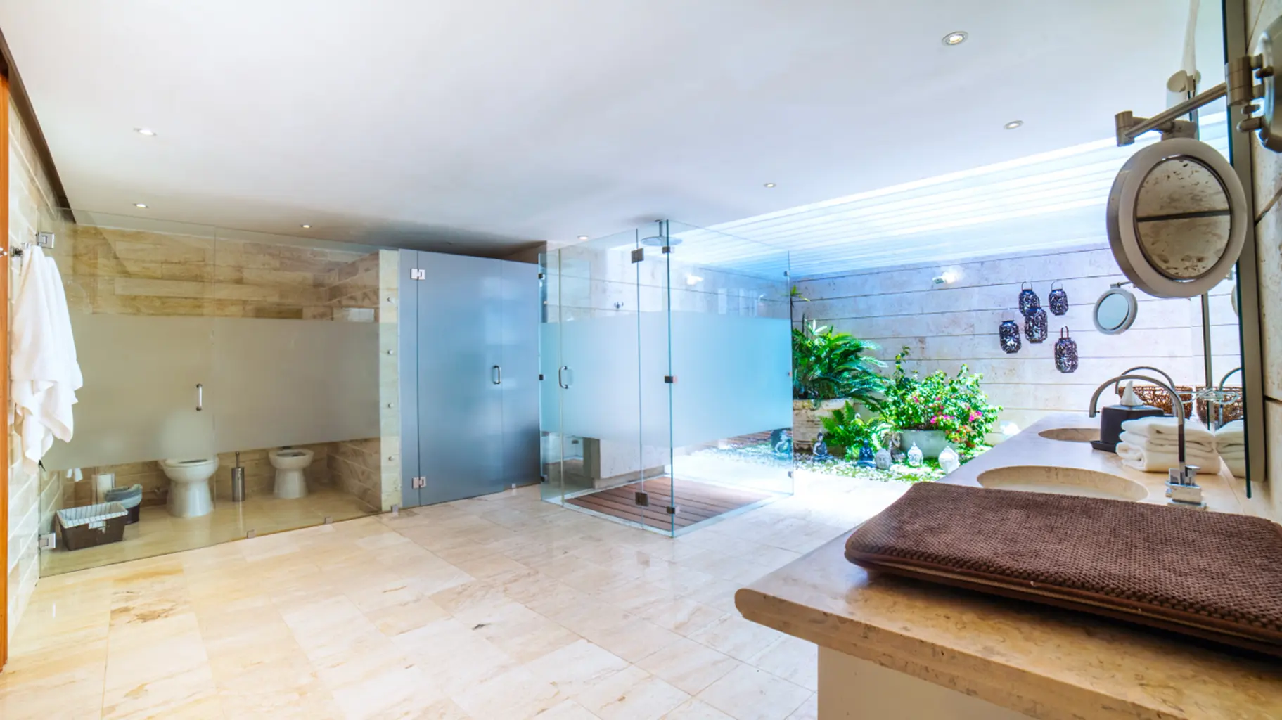La villa cuenta con 10 baños, incluido un jacuzzi privado en el dormitorio principal.