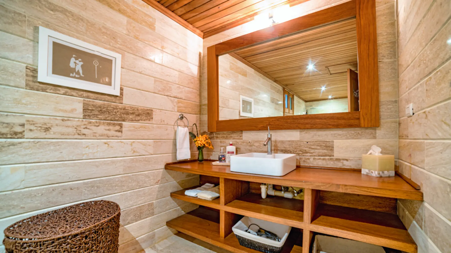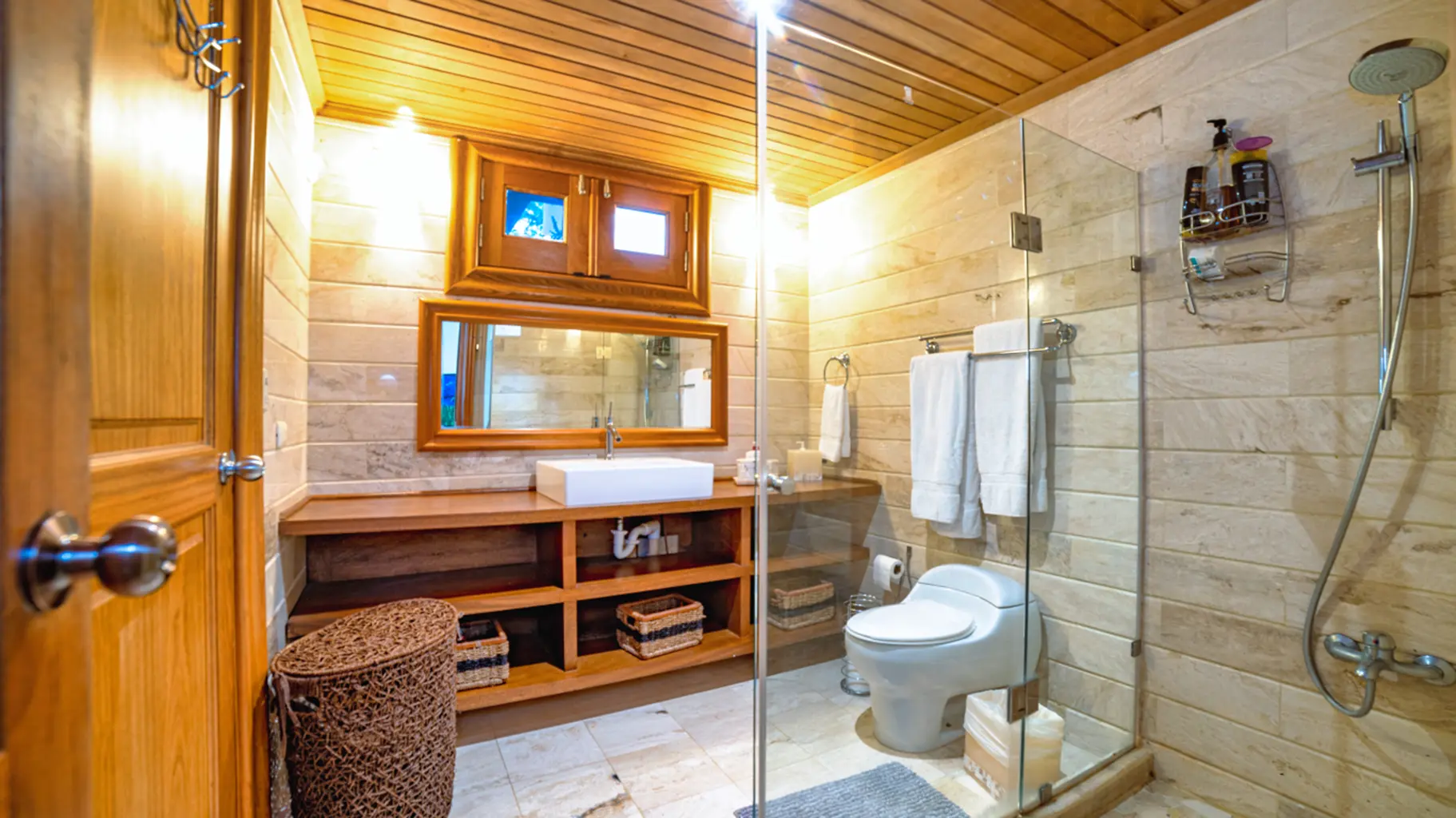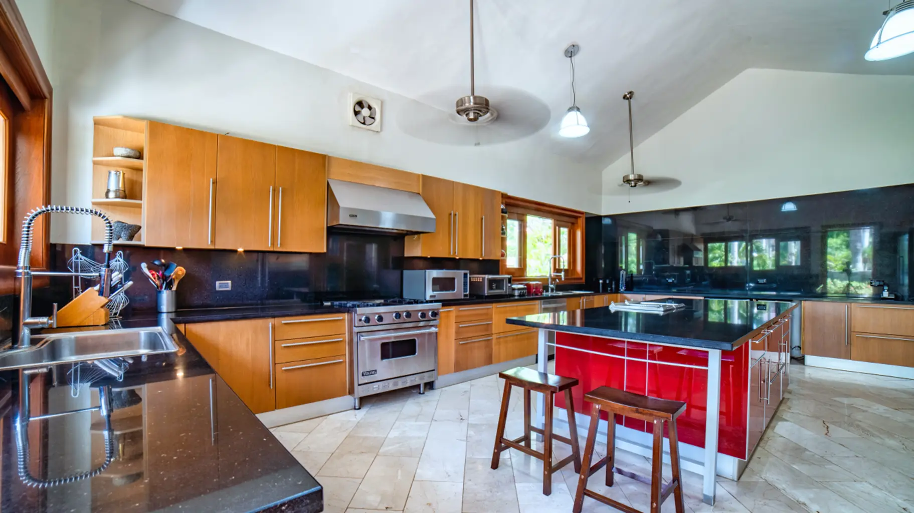 La villa cuenta con 10 baños, incluido un jacuzzi privado en el dormitorio principal.