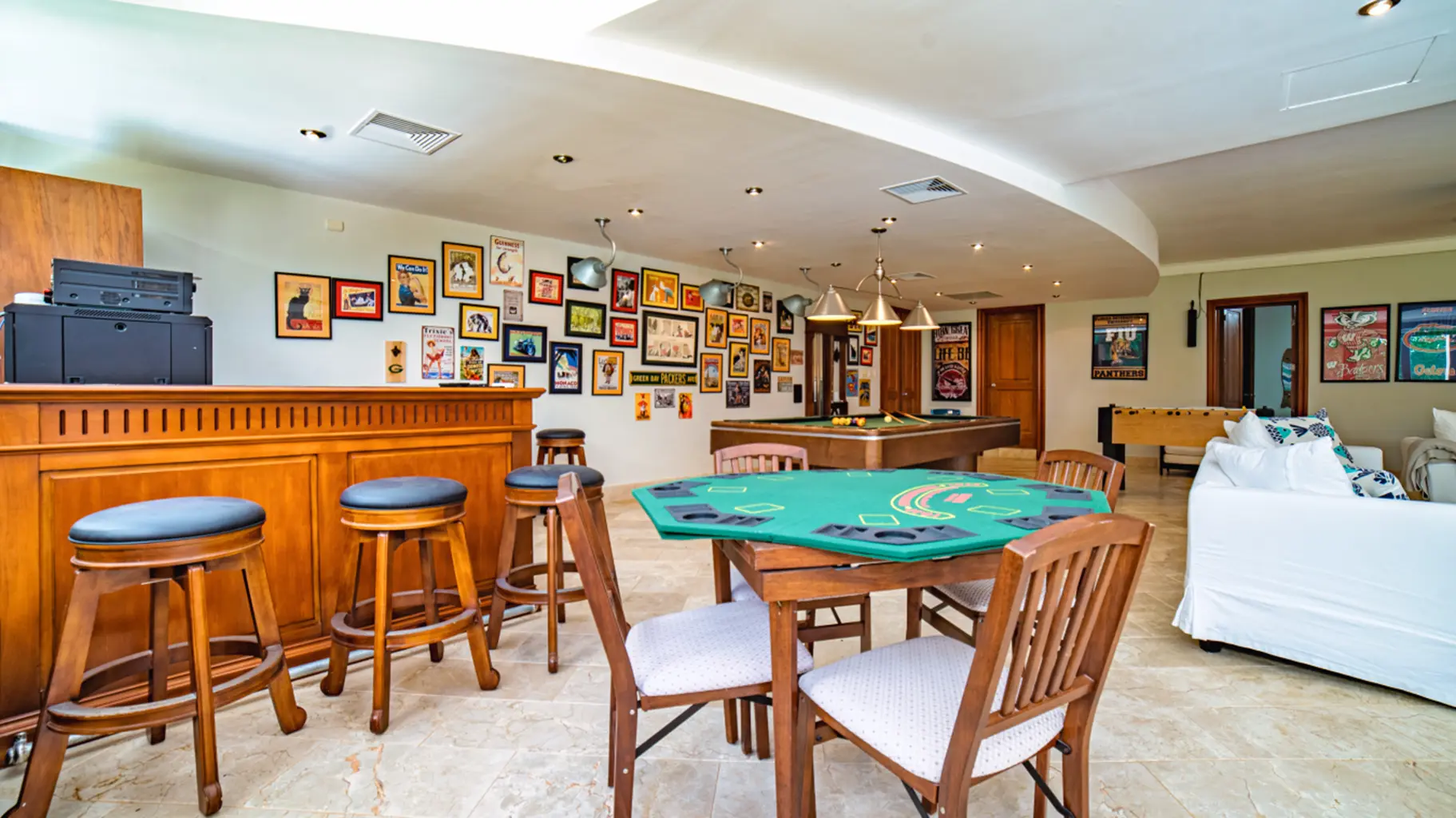 Para el entretenimiento, la villa ofrece una sala de juegos y cine con mesa de billar, juegos de mesa, máquina de palomitas y minibar, además de una pista de arena para actividades al aire libre. El amplio jardín y la glorieta con barbacoa son ideales para relajarse.