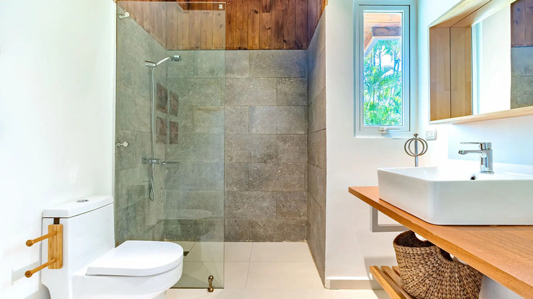 The villa boasts 4 bathrooms for convenience. Its heart is a comfortable living room and a fully equipped kitchen, complemented by multiple dining areas: a main table for 8, a smaller round table for 6, and a charming poolside table for 4.