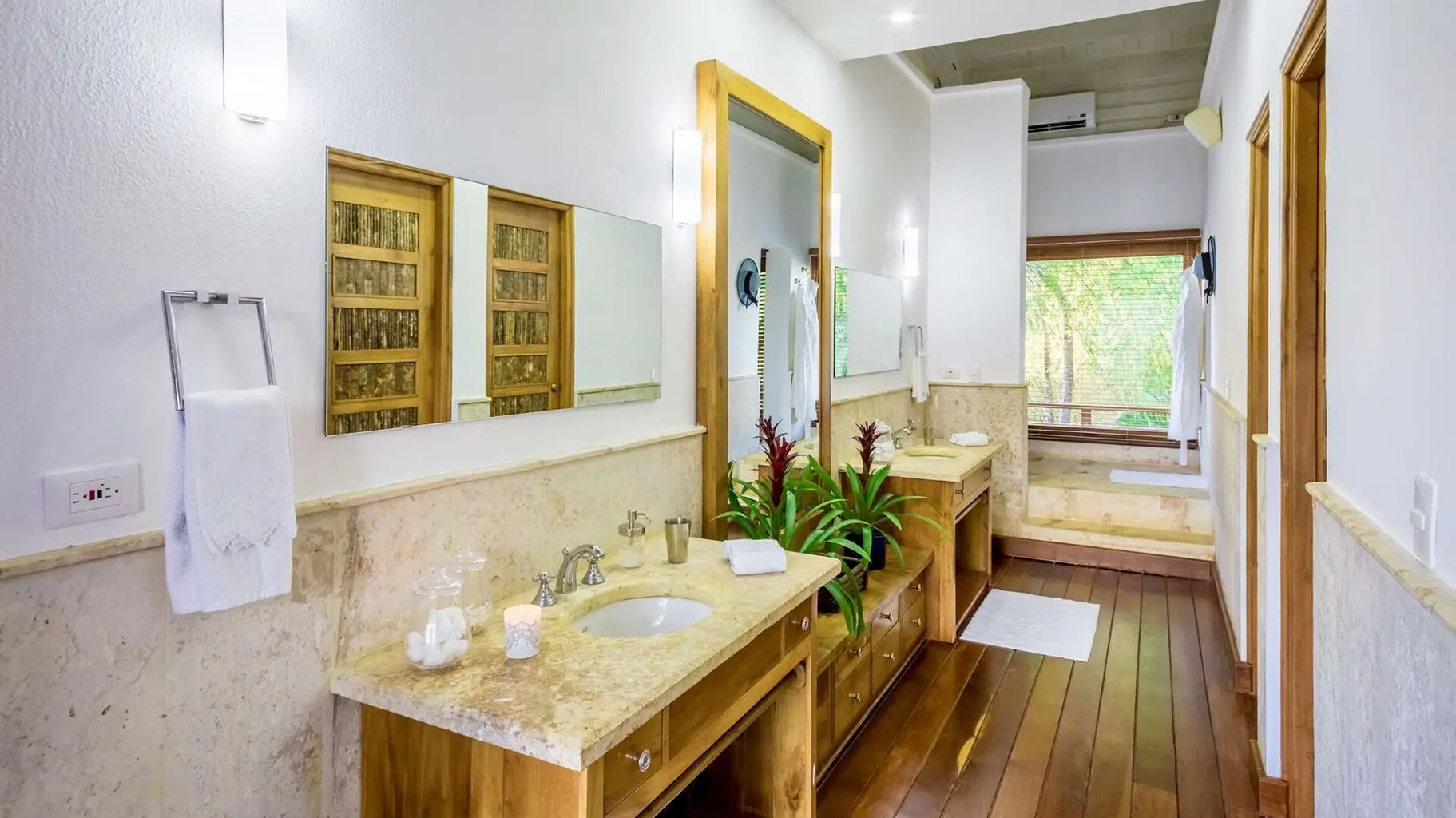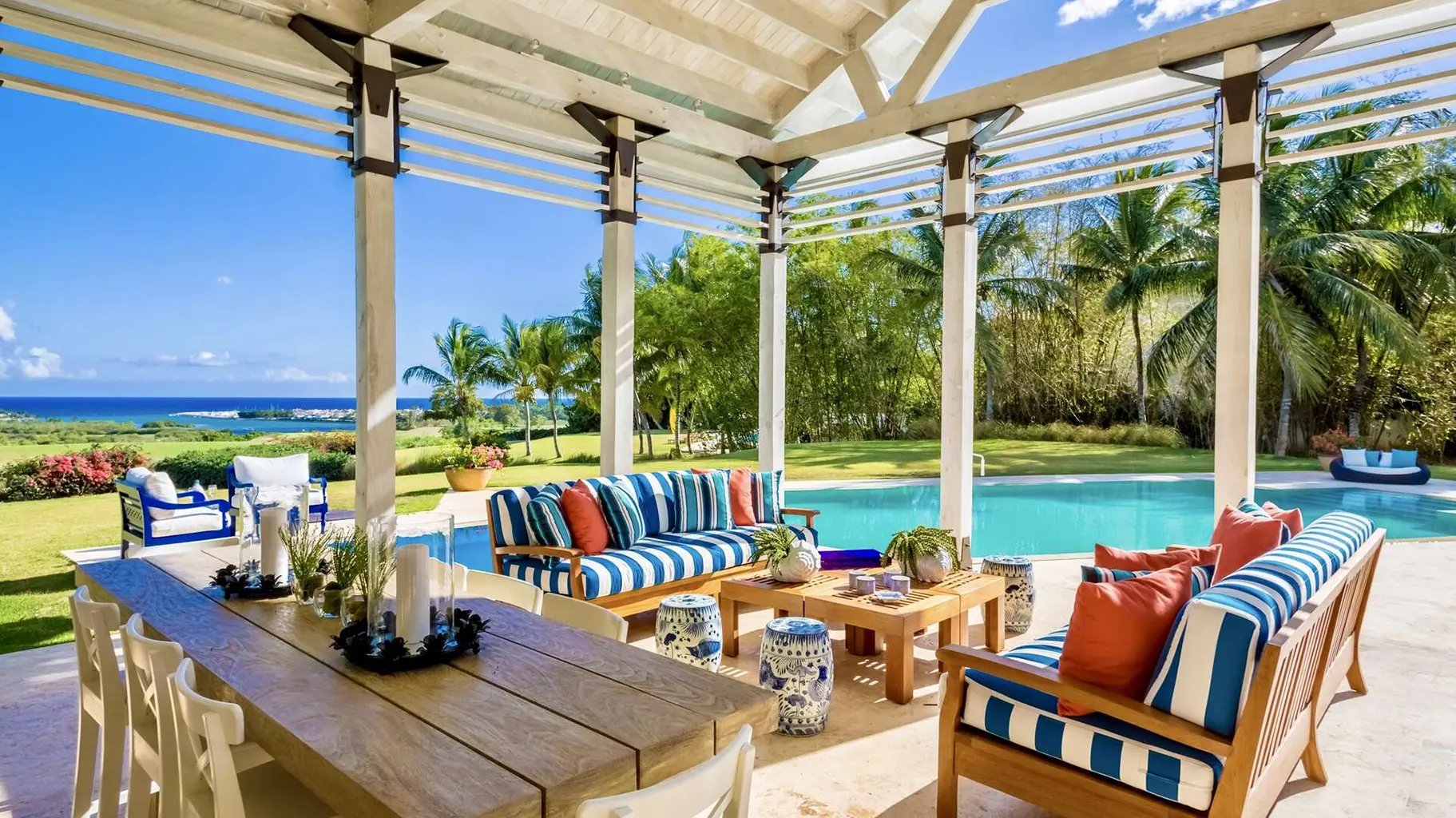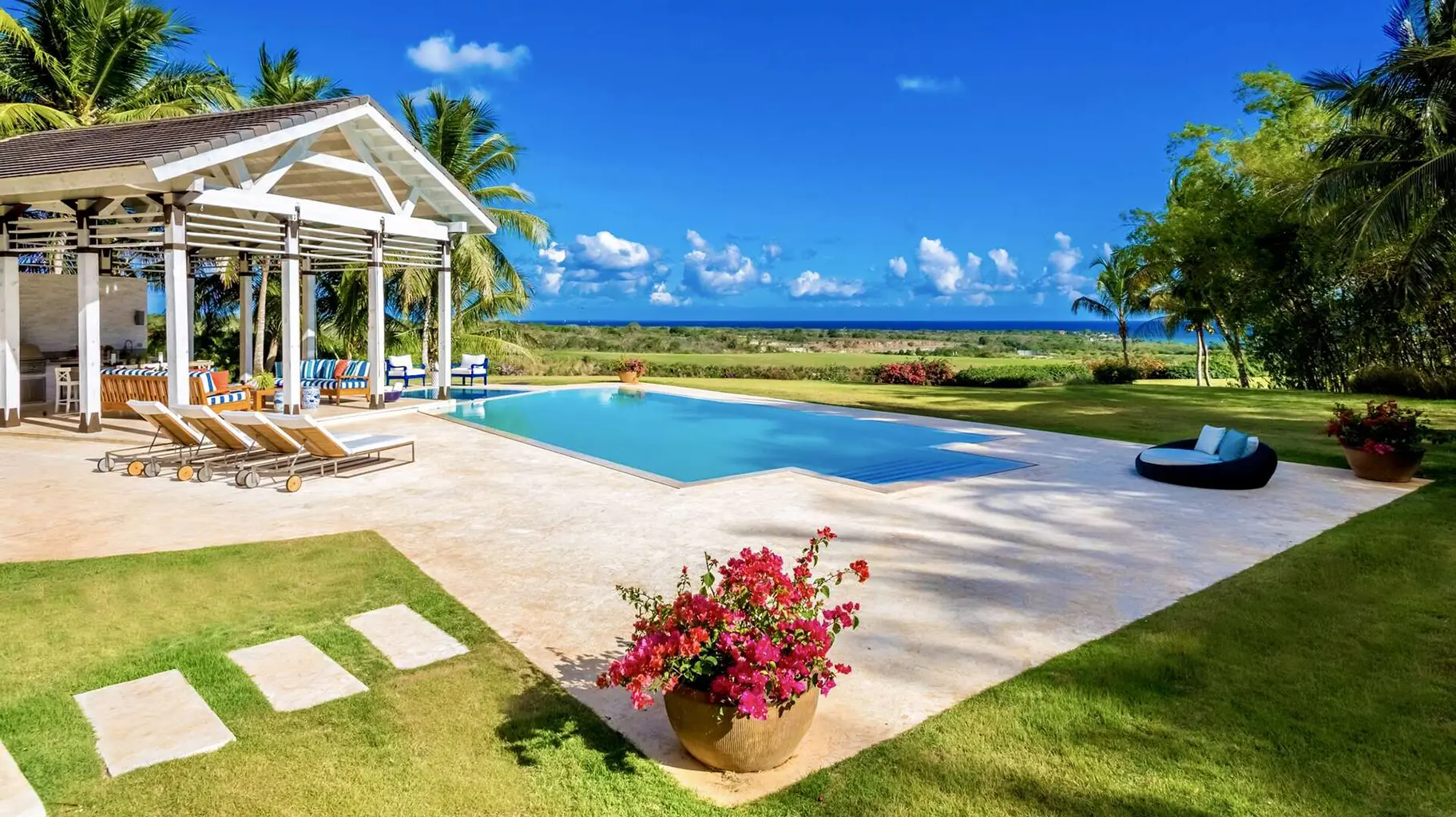 This luxury villa in Casa de Campo, Vista Chavón 17, is a stunning two-level property perfectly designed for up to 10 guests. It features 5 spacious bedrooms, each with a private en-suite bathroom. Sleeping arrangements include three rooms with two Queen beds each and two rooms with a King bed.